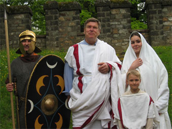 Wir hatten unter uns einen römischen Senator mit Frau und Kind und einen Auxiliarsoldaten in voller (schwerer) Ausrüstung.