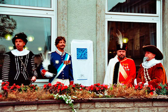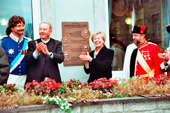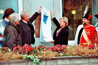 Enthüllung der Reliefplatte am Brauhaus am Markt |