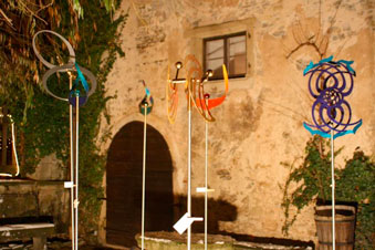 Häusern im Ortskern stellen Künstler ihre Werke aus, die Gassen sind