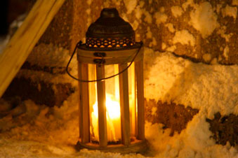 stimmungsvoll erleuchtet, für die Kinder steht ein nostalgisches