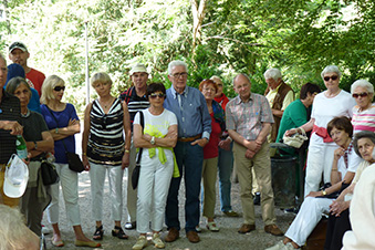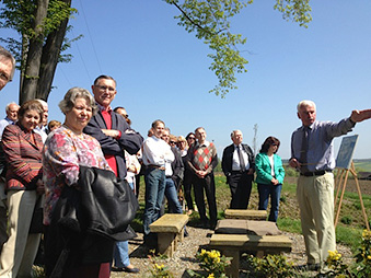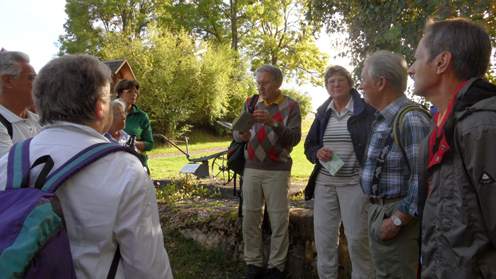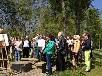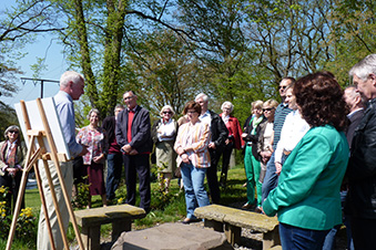 | An der Gedenkstätte Billmuthhausen zitiert Herr Dr. Ott aus einer ergreifenden Schilderung der Räumung des ehemaligen Dorfes | ||