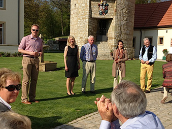| Die diesjährige Arnsteiner Landpartie führte uns bei herrlichem Frühlingswetter nach Büchold. In ihrem auf den Grundmauern des alten Schlosses neuerrichteten Anwesen, erwarteten uns Brauerei-Chefin Dr. Susan Schubert und ihr Gemahl, Brigadegeneral a.D. Henning Glawatz. Nach einem Begrüßungstrunk mit frisch gezapftem „ Herzog-von-Franken“ – Pils ging es auf historische Entdeckungstour. Unter fachkundiger Führung des Hausherrn wurden uns die bewegten und spannenden Zeitläufe des Bücholder Schlosses näher gebracht. Mit Staunen und wachsender Begeisterung folgten wir ihm auf den Stationen durchs Museum, um das Schloss und über den Wall, bis uns der laute Ruf seiner Gattin „Henning mach‘ Schluss, wir wollen essen!“ erreichte. Das süffige Bier mundete den über 50 Teilnehmern zum fränkisch-deftigen Spezialitätenbuffet ebenso wie der Harmonie-Silvaner. Als Vorsitzender Georg Kreiner und Organisator Detlef Sieverdingbeck gebeten wurden, sich ins „Ehrenbuch“ des Schlosses einzutragen, war allen klar, „des woar schee un mer kummet wieder!“ ![]() ![]() ![]() ![]() ![]() ![]() ![]() ![]() ![]() ![]() ![]() ![]() ![]() ![]() ![]() ![]() ![]() ![]() ![]() ![]() ![]() ![]() ![]() |