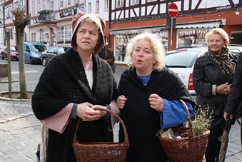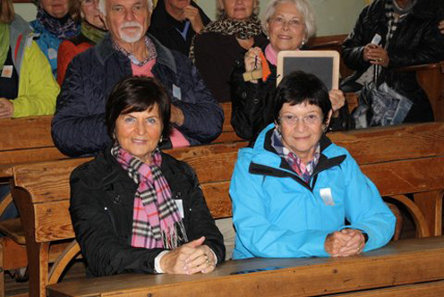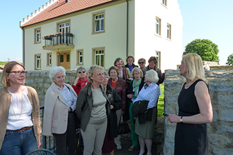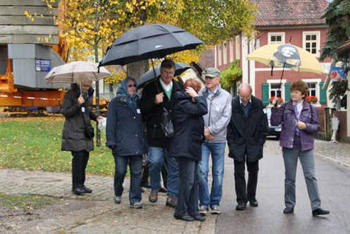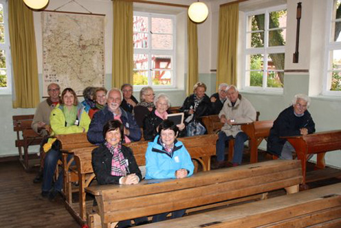 | Bevor wir im Weingut einkehrten, zollten wir dem leicht regnerischen Wetter Tribut und besichtigten das Kirchenburgmuseum Mönchsondheim. Das in ein normales Dorf integrierte Ensemble von altem Krämerladen, Gasthaus, Kirchenburg und alter Schule ließ manche Erinnerung wach werden und zauberte vielen ein Lächeln ins Gesicht. Die beiden Gästeführerinnen, Frau Manger und Frau Hartzung trugen mit ihrem Sachverstand und vor allem mit den herrlichen Anekdoten sicher dazu bei. | ||