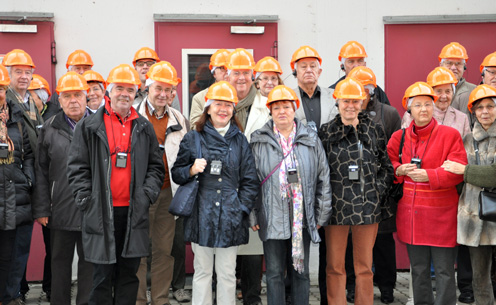 Am Mittwoch, den 13. November 2013 besuchten 45 Harmoniemitglieder das Gemeinschafts-kraftwerk in der Hafenstraße. Ausgerüstet mit Schutzhelmen und Kopfhörern wurden alle durch Herrn Walter zu den wichtigsten Stellen des Werkes geführt: zum Müllbunker mit seinen Kränen, zu den Müllkesseln, wo die Verbrennung des Mülls durch kleine Fenster beobachtet werden konnte und zu den Rauchgasreinigungsanlagen, die praktisch alle Schadstoffe herausfiltern. |