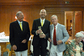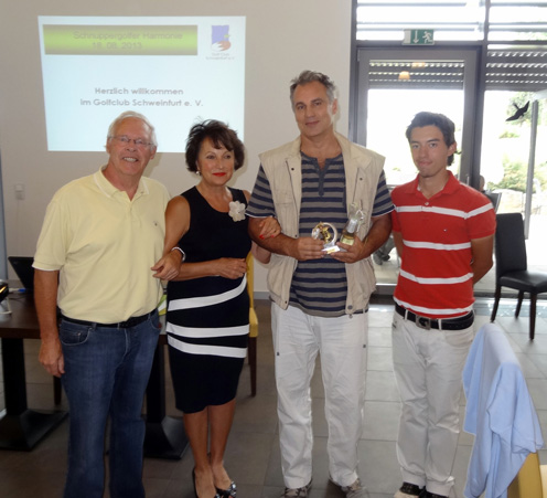 | Die Tagessieger werden von der Vizepräsidentin Rosi und dem Golflehrer Daniel geehrt | ||