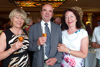| Georg Kreiner dankt den „Machern“ des Harmonie-Weinbergfests: Andrea und Georg Müller sowie dem Weinbeauftragten der Harmonie, Detlef Sieverdingbeck. | ||