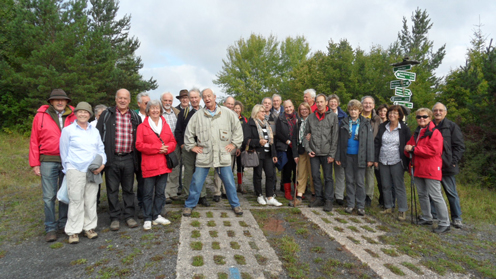 Auf unserer diesjährigen Herbstwanderung erkundeten wir das Gebiet rund um die Heldburg in Südthüringen. Nach unserem ersten Etappenziel, der Feste Heldburg und einer Mittagseinkehr im gleichnamigen Ort, wanderten wir zur ehemaligen deutsch-deutschen Grenze wo eine Gedenkstätte an das Dorf Billmuthhausen erinnert, das in den 1970er Jahren dem Ausbau der Grenzanlagen weichen musste. |