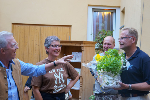 | Das besondere Weinerlebnis führte uns dieses Jahr in den südlichen Steigerwald und da auf die „Rotweininsel Wiesenbronn“. Der Winzer Gerhard Roth zeigte uns seinen Keller, in dem die Gärtanks bereits verheißungsvoll blubberten und erklärte uns seine Philosophie von nachhaltigem Weinbau. Besser als alle seine Worte verdeutlichten die hervorragenden Weine die positive Wirkung seiner Betriebsführung! |