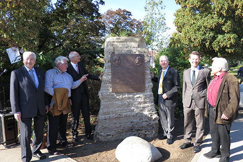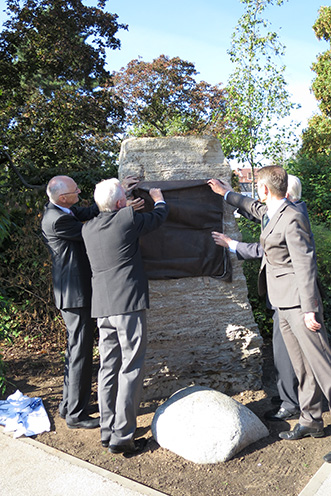 | Oberbürgermeister Sebastian Remelé und Ehrenvorsitzender Georg Kreiner erinnerten in ihren Ansprachen anlässlich der Einweihungsfeier des Denkmals am 21.September 2016 an die Bedeutung der Pioniere der Schweinfurter Industriegeschichte. Unsere Heimatstadt, so betonten die Redner, wäre sicherlich ohne die jetzt geehrten Unternehmer nicht zu dem gewachsen, was wir an Lebensqualität hier täglich empfinden dürfen. Es war eine würdige Feier, an der über 100 Gäste teilnahmen. |